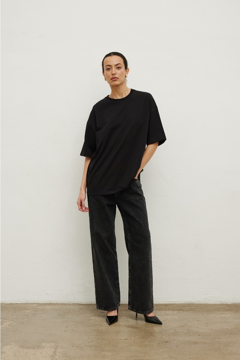 Klasyczny bawełniany t shirt z haftem, w kolorze czarnym.