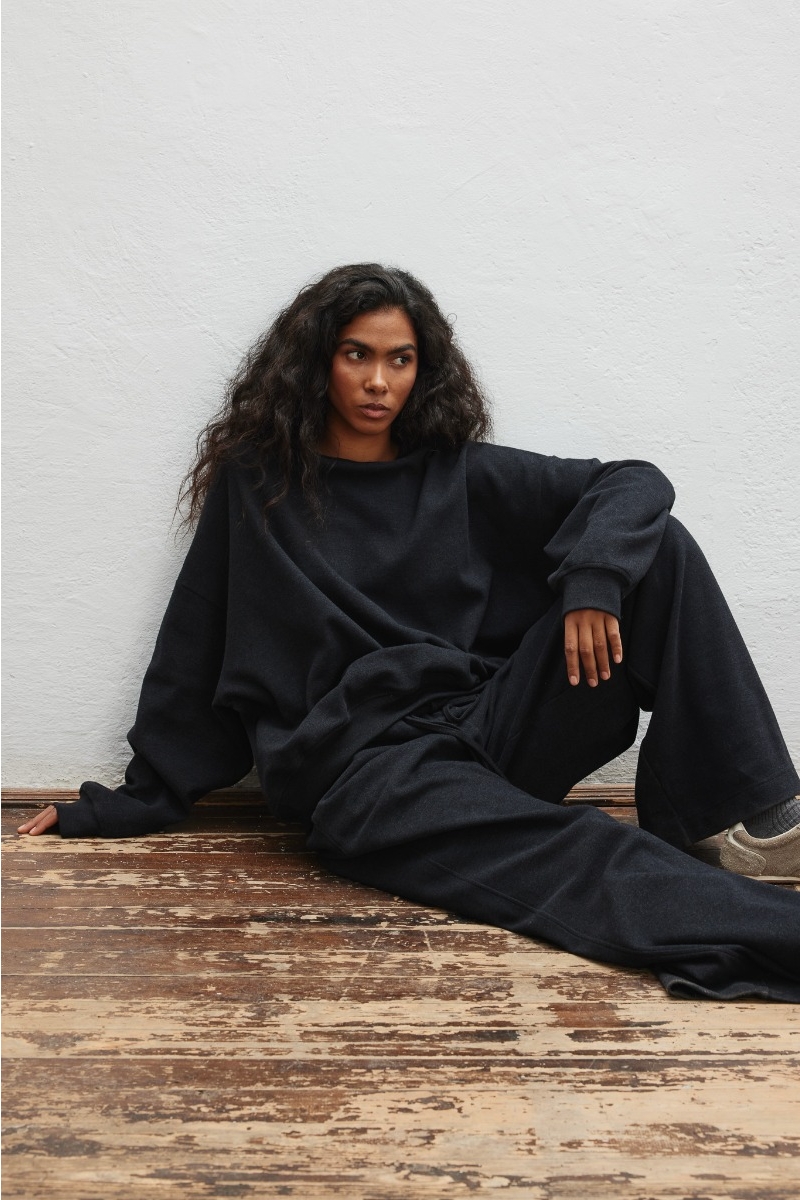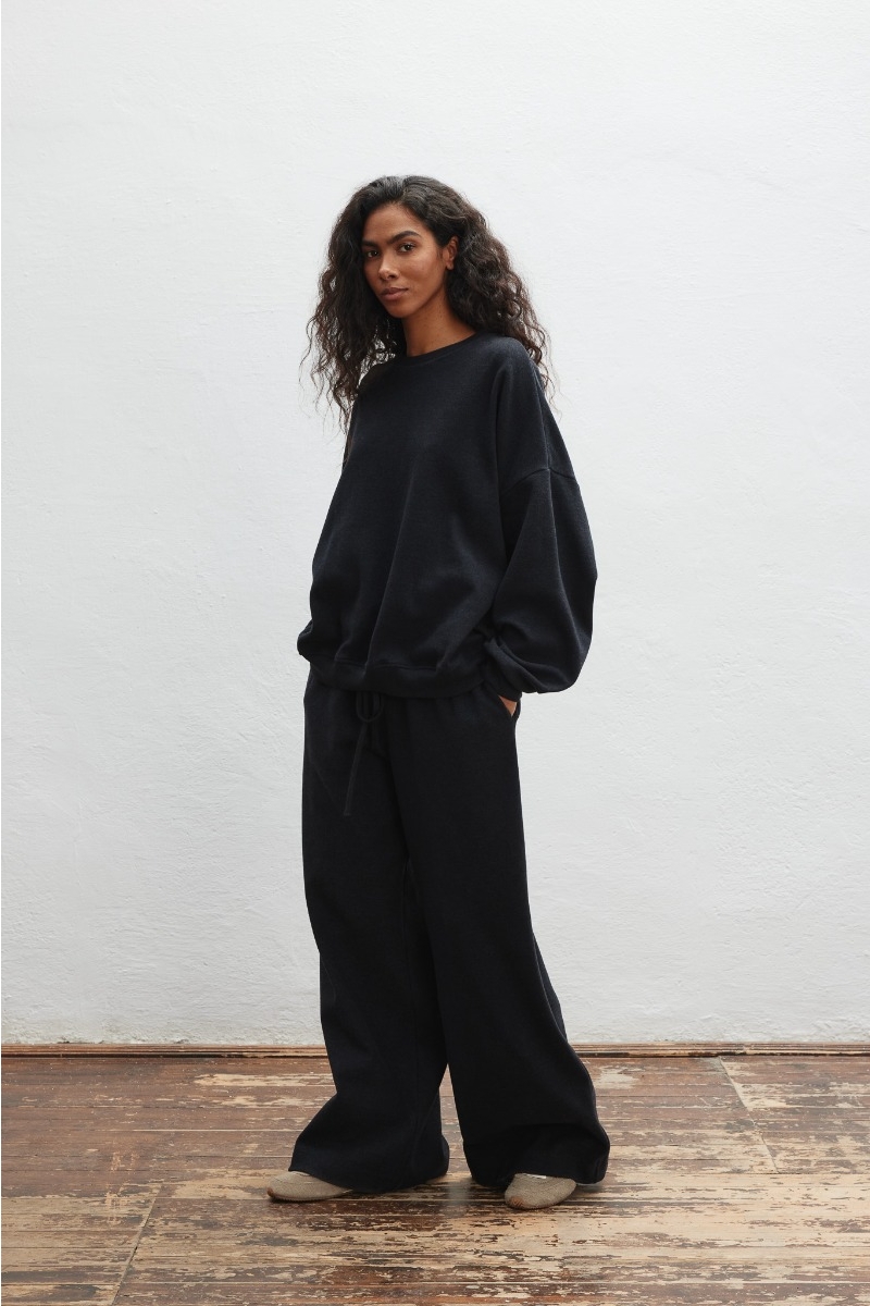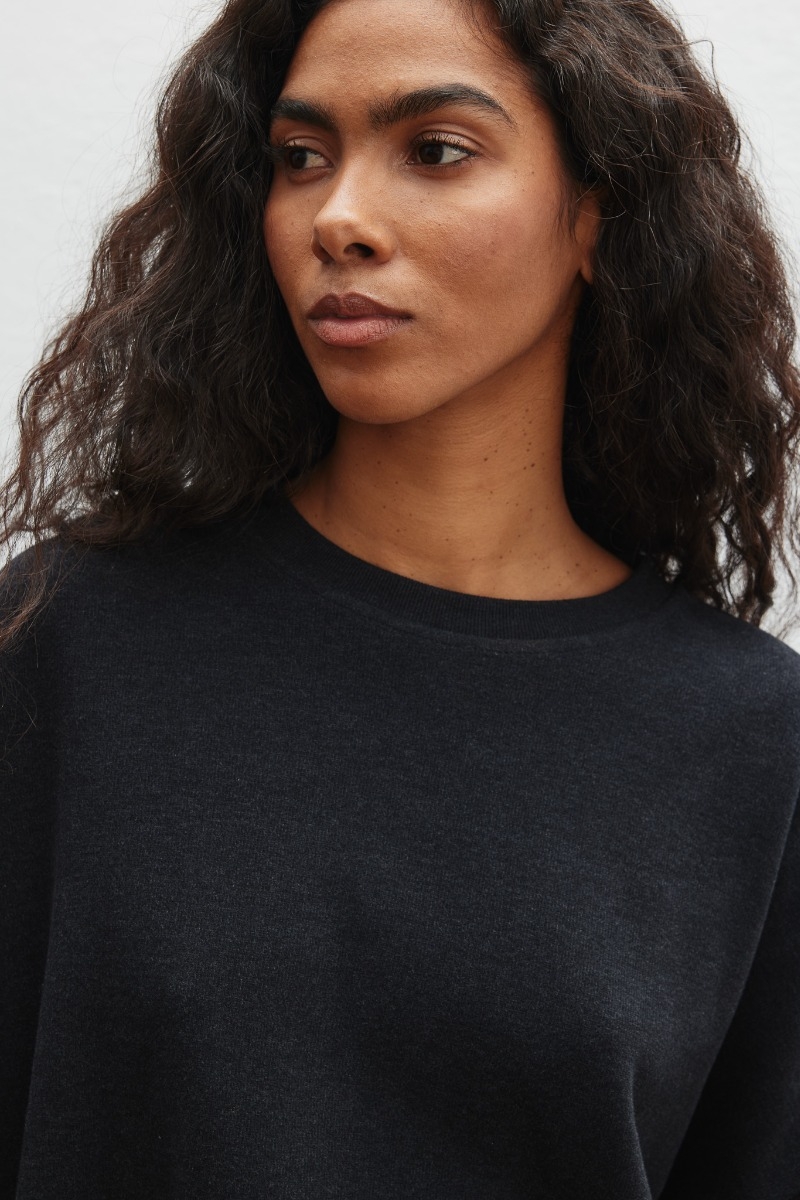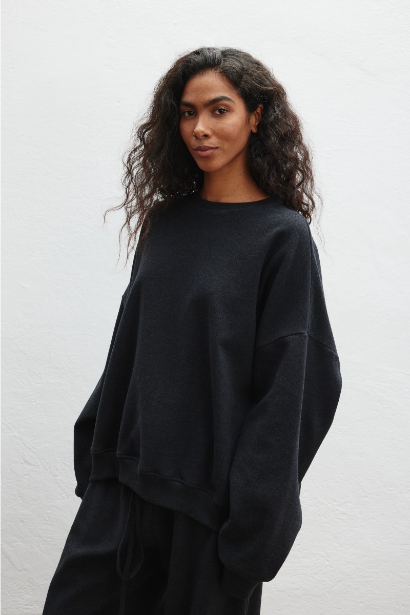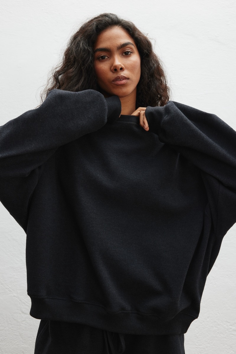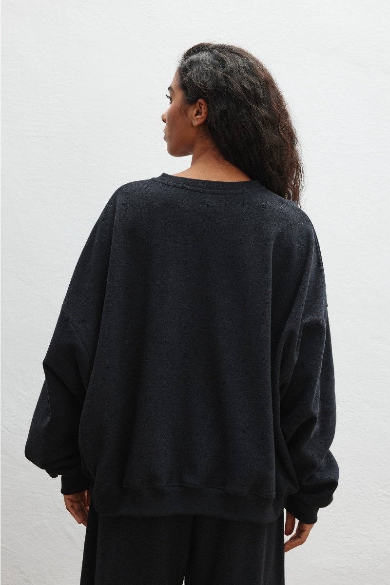 Fason o luźnym kroju z brzegami zakończonymi ściągaczem. Wykonana z nie ocieplonej dzianiny dresowej . Model o lekko obniżonej linii ramion. Fason z niewielkim, okrągłym dekoltem. Prosta, oversize'owa forma, która przypadnie do gustu wielbicielkom uniwersalnych i wielosezonowych produktów. Pozwala na dopasowanie do wielu typów sylwetek.