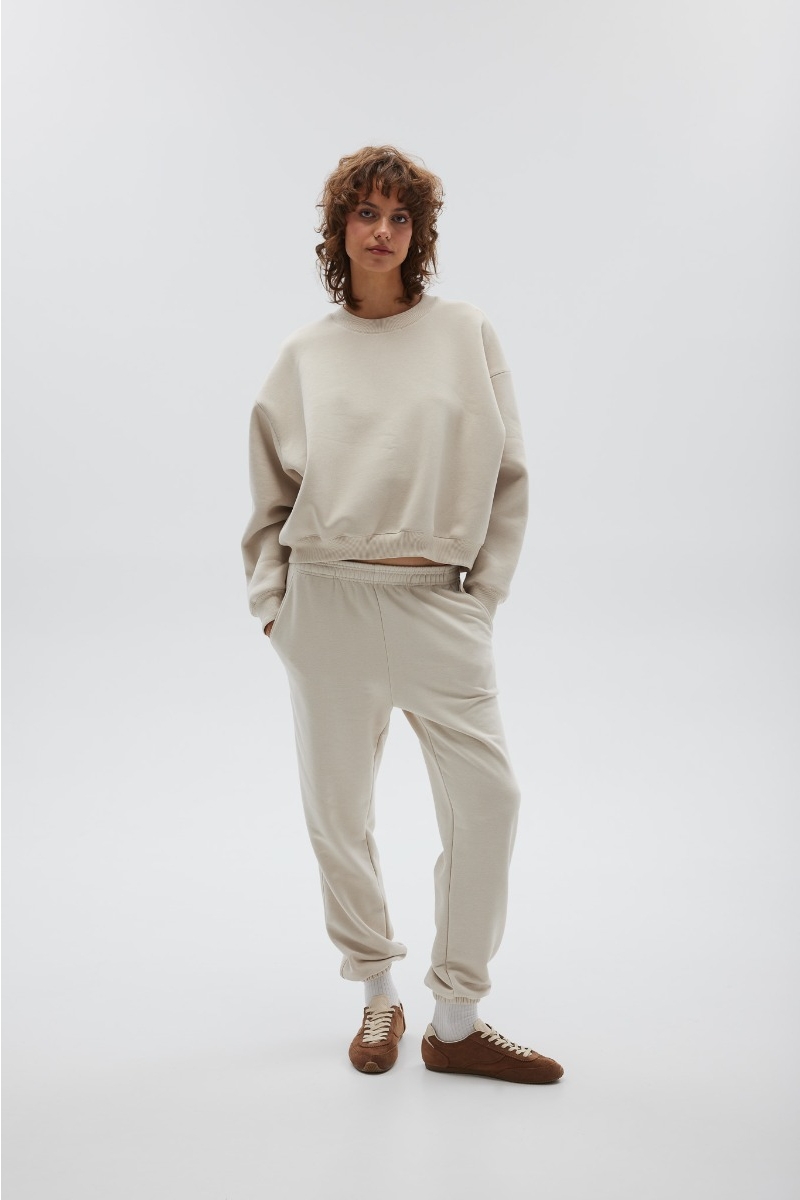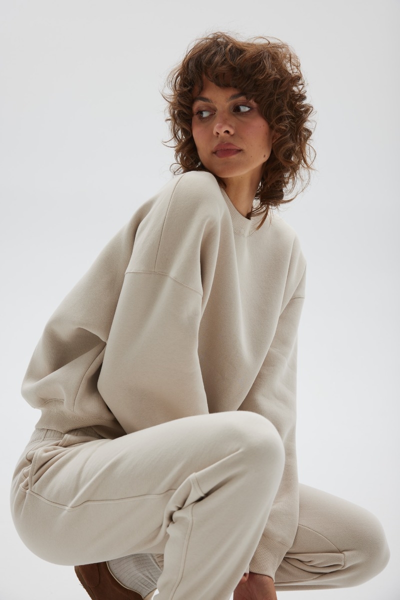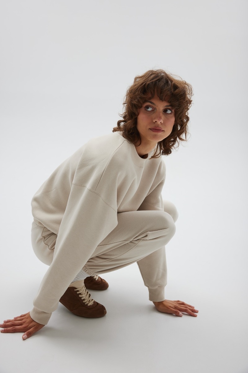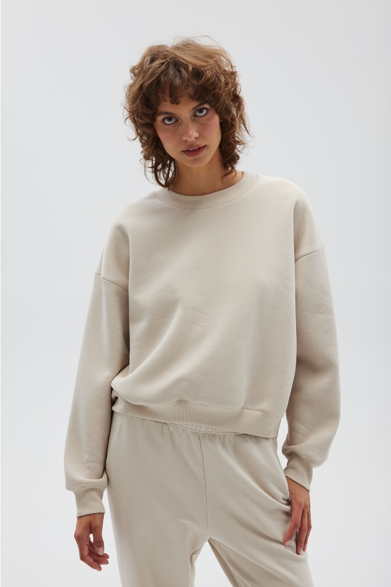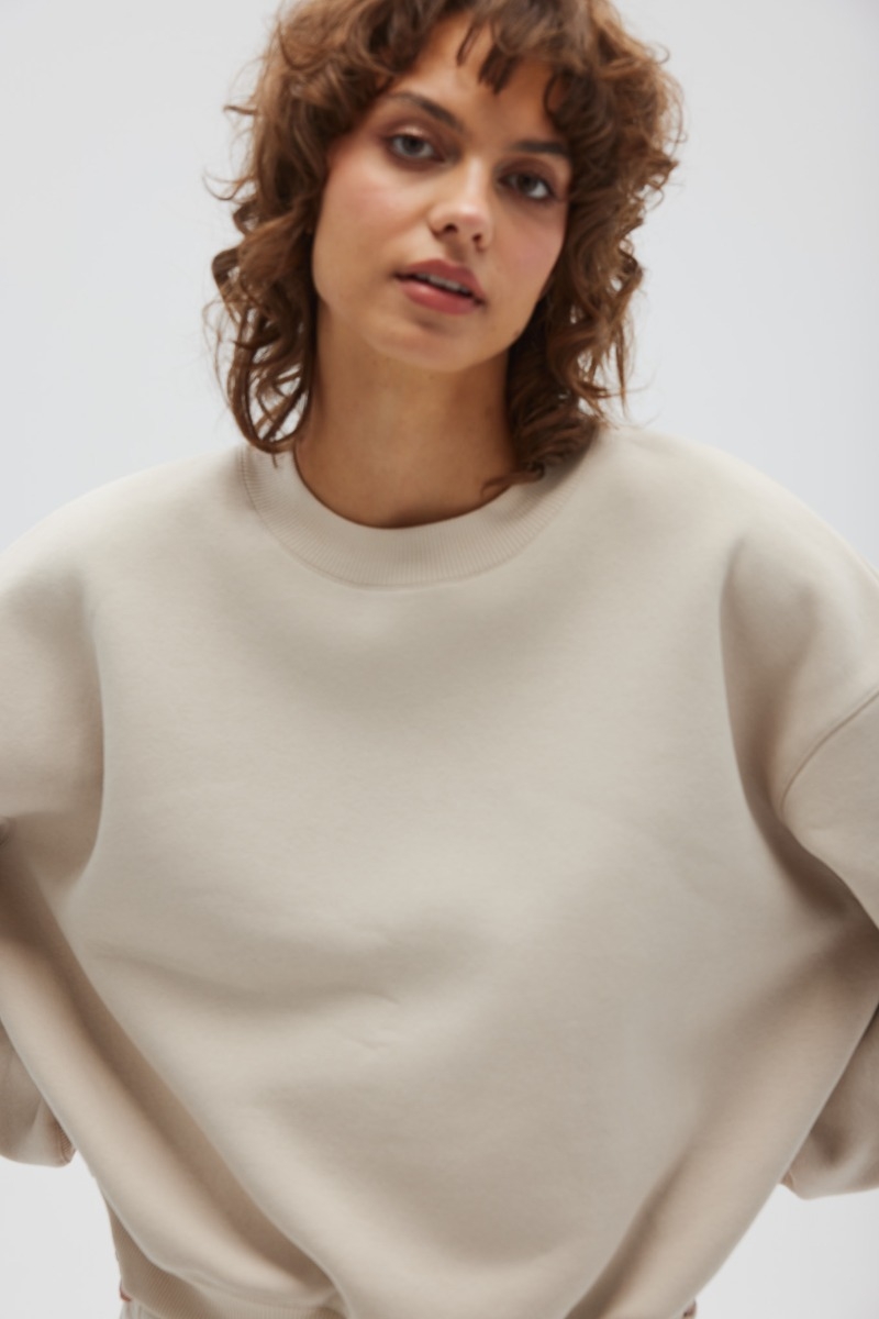 Fason o luźnym kroju z brzegami zakończonymi ściągaczem. Wykonana z ocieplonej dzianiny dresowej . Model o lekko obniżonej linii ramion. Fason z niewielkim, okrągłym dekoltem. Prosta, oversize'owa forma, która przypadnie do gustu wielbicielkom uniwersalnych i wielosezonowych produktów. Pozwala na dopasowanie do wielu typów sylwetek.