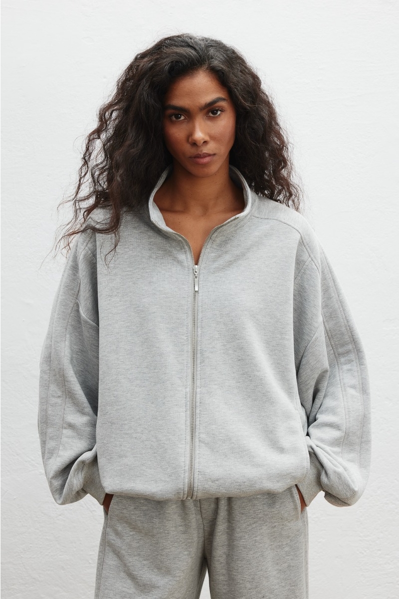 Model z wyższym konierzem , zapinany na zamek błyskawiczny. Po bokach praktyczne kieszenie, na rękawach charakterystyczne przeszycia. Tył bluzy zupełnie gładki. Całość wykończona ściagaczem w tym samym kolorze. Świetnie łączy się zarówno z jeansem, jak i bielą, czy czernią. Pozwoli stworzyć wiele uniwersalnych i ponadczasowych stylizacji. Tworzy idealną całośc ze spodniami z tej samej kolekcji.