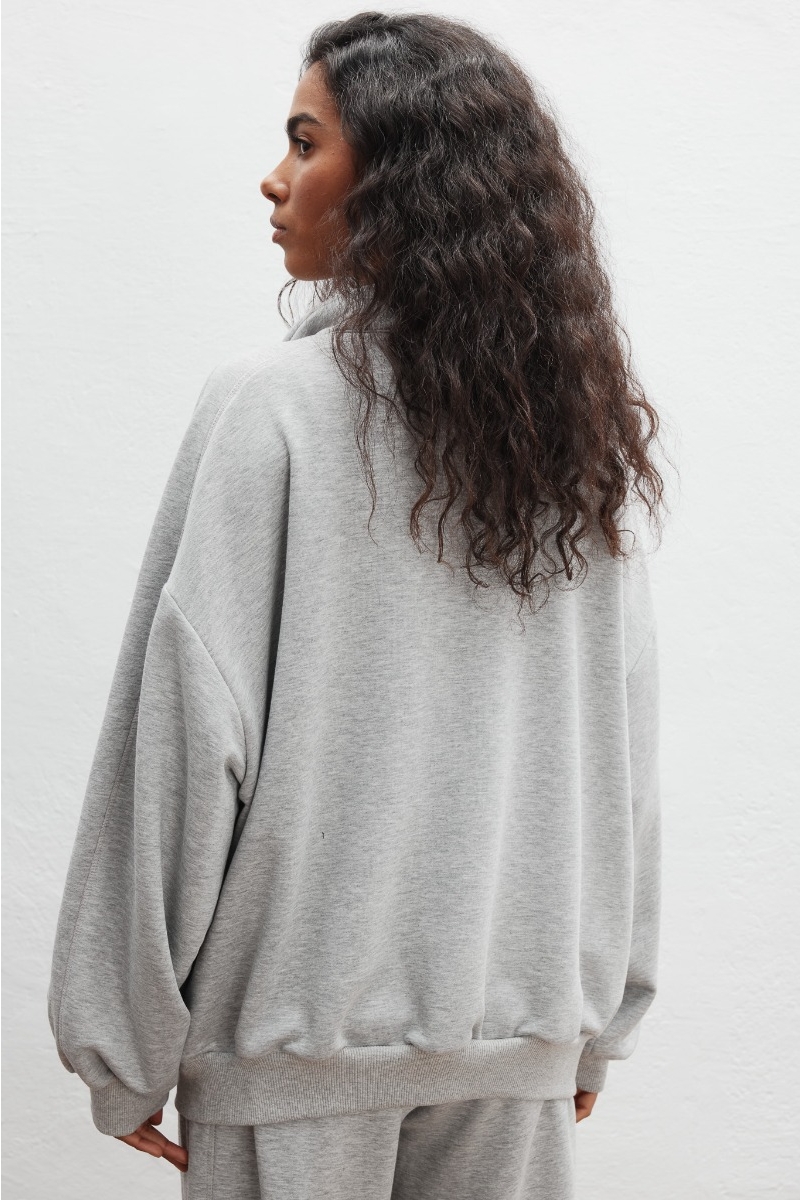 Klasyczna bluza wykonana z nie ocieplonej dzianiny w kolorze szarym z efektem melanżu.