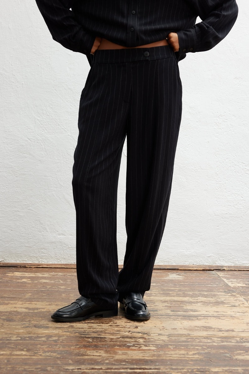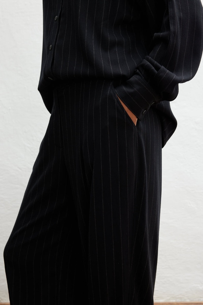 Prosta nogawka z charakterystycznym pionowym przeszyciem, nadaje im elegancji i wyrafinowania. To absolutny "must have" dla każdej kobiety, które doceniają wyjątkową jakość i styl. Spodnie są idealne zarówno na ważne spotkania biznesowe, jak i na wieczorne wyjścia, gwarantując zawsze modny i elegancki wygląd.