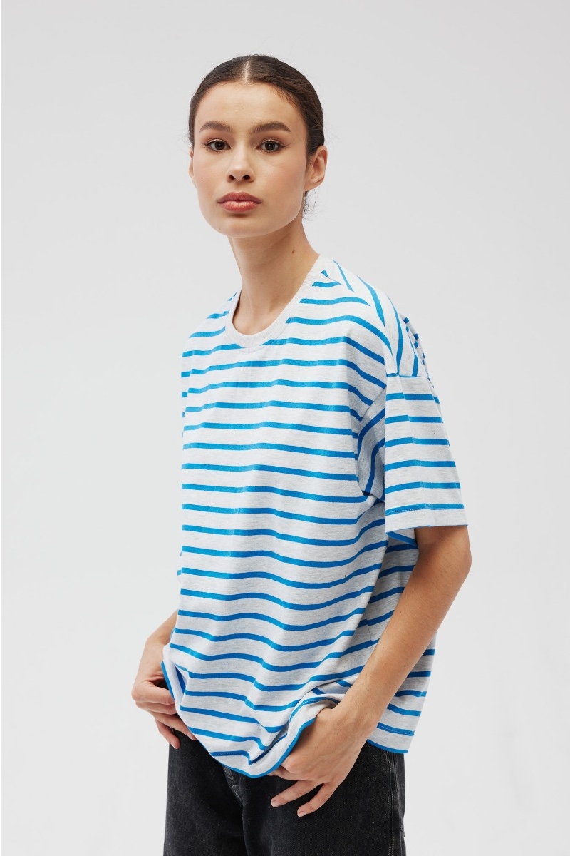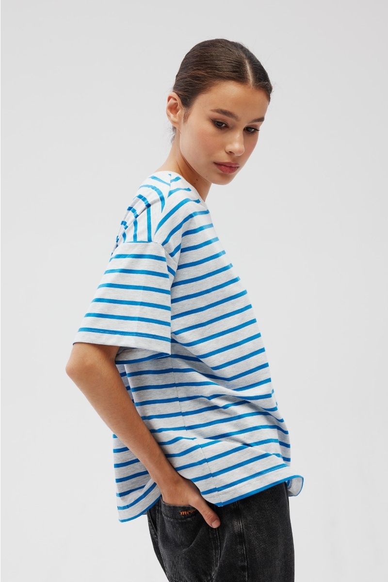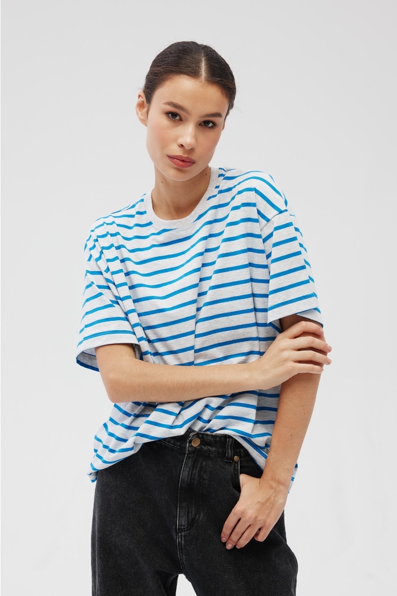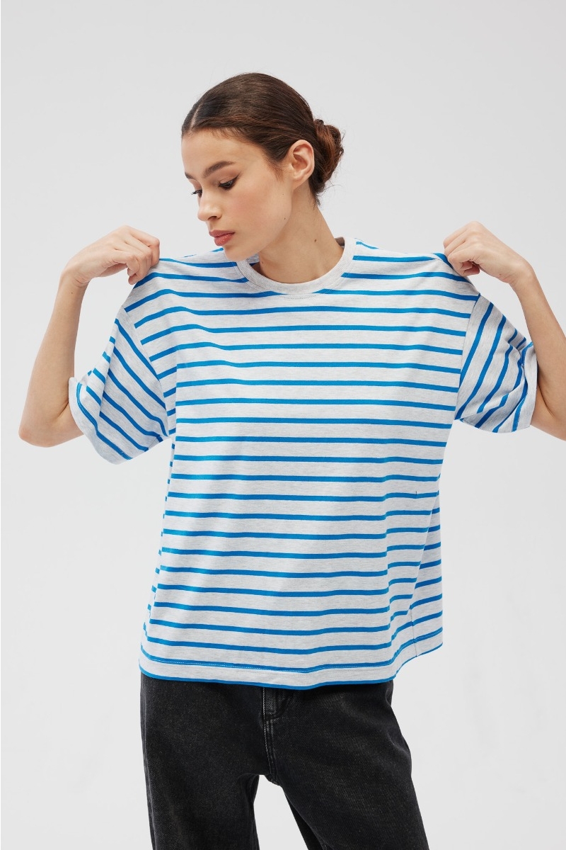 Klasyczny bawełniany t shirt w paski szaro-niebieskie