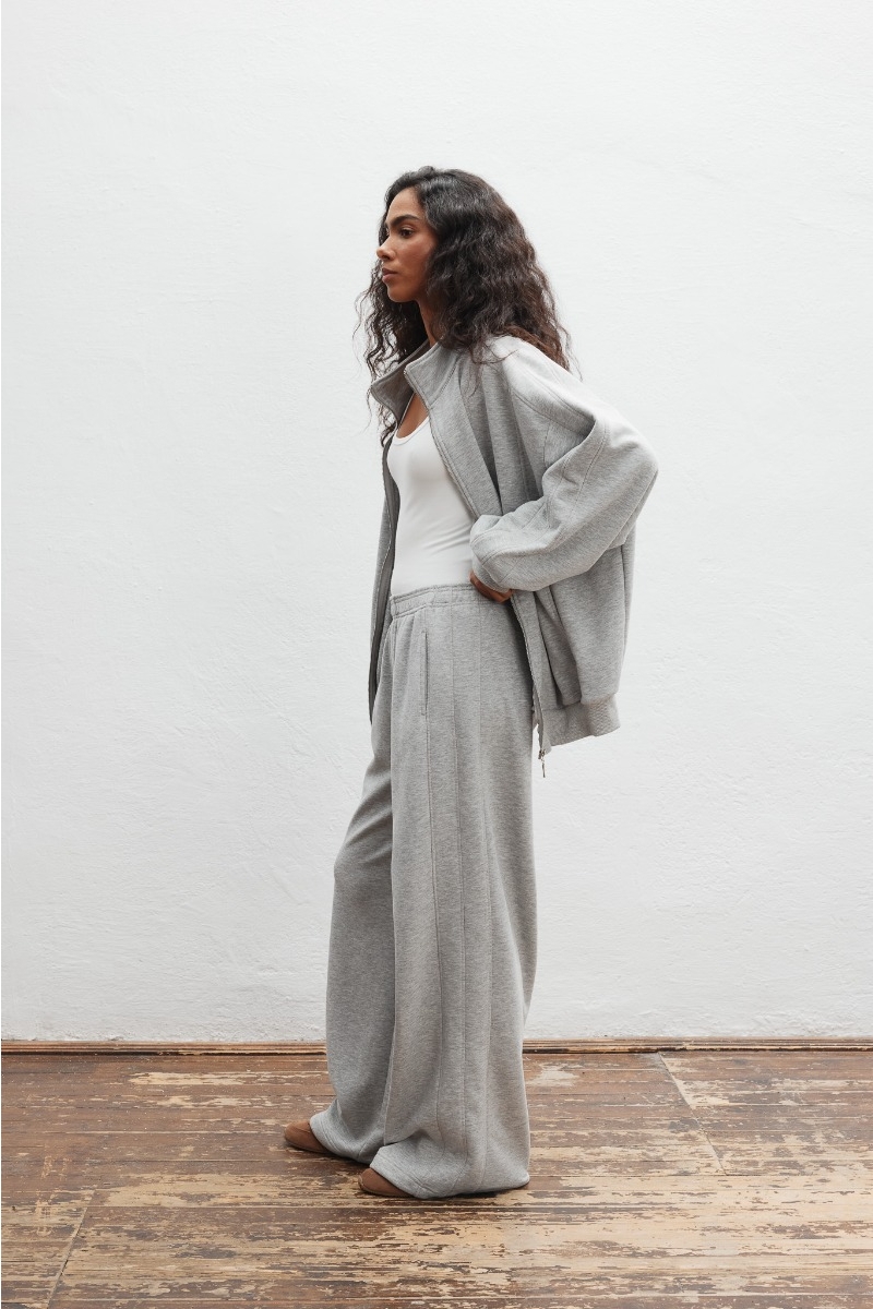 Model z szerszymi nogawkamiz charakterystycznymi przeszyciami po bokach, w pasie wszyta guma która zapewnia idelane dopasowanie do sylwetki. Po bokach dwie praktyczne kieszenie. To co wyróżnia ten model to ukryte w nogawkach regulatory, które pozwolą dopasować dół spodni do Twoich preferencji. Całość wykonana z bawełny która pięknie sie układa i zapewnia maksymalny komfort podczas noszenia. Połączysz je zarówno ze zwykłym t-shirtem, jak i bluzą, czy dopasowanym topem.
