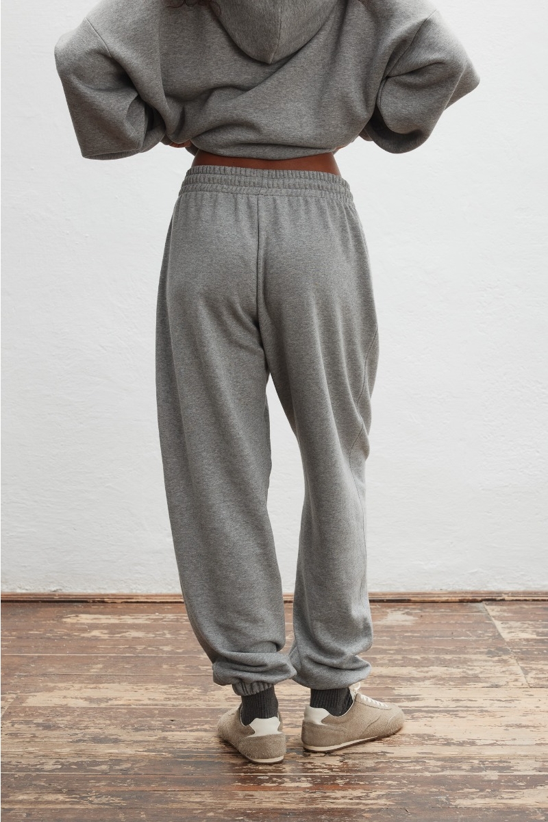Joggery damskie wykonane z dzianiny dresowej w kolorze szarym z efektem melanżu.