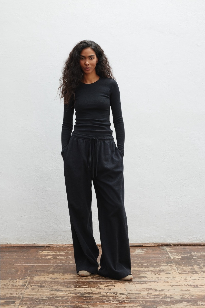 Spodnie wykonane z miękkiej bawełny w kolorze ciemny grafit z delikatnym efektem wykończenia SKIN PEACH.