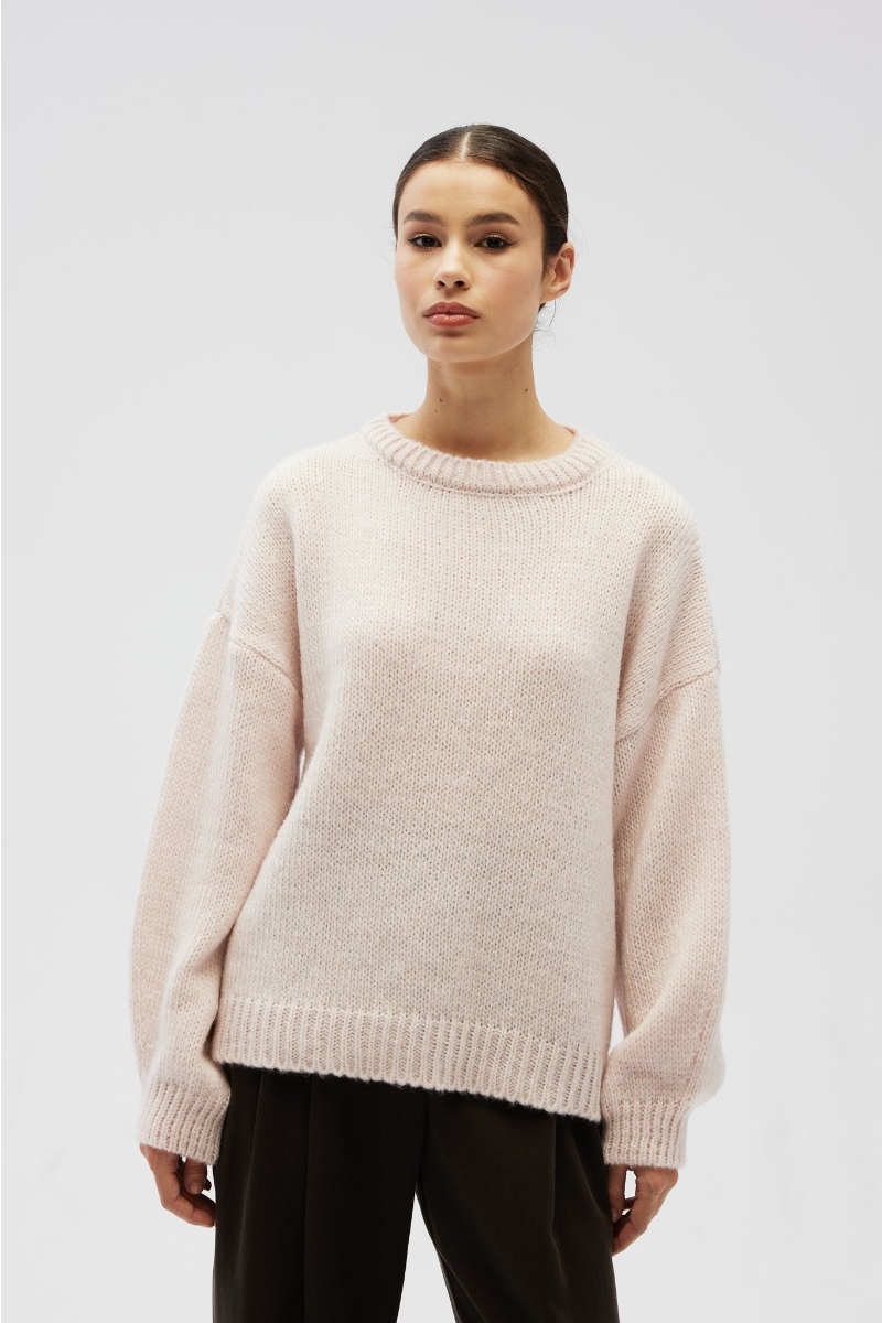 Fason z niewielkim, okrągłym dekoltem. Wykonany płaskim, prostym ściegiem z przyjemnej w dotyku przędzy. Możesz wykorzystać go w codziennych stylizacjach na wiele różnych sposobów - wszystko zależy od Twojej wyobraźni i preferowanego stylu. Subtelny, najmodniejszy w obecnym sezonie odcień ożywi każdą stylizację, zarówno jesienno-zimową, jak i wiosenno- letnią. Odpowiedni dla każdego typu sylwetki.