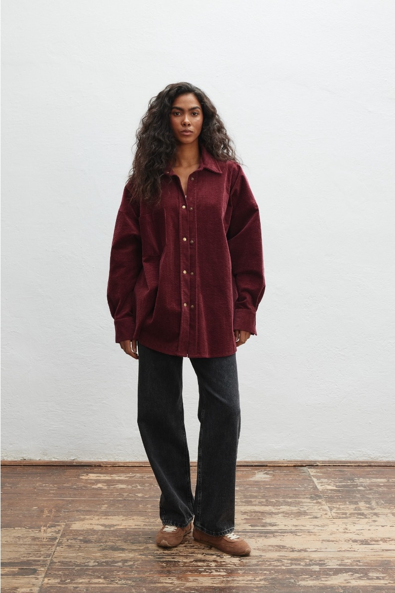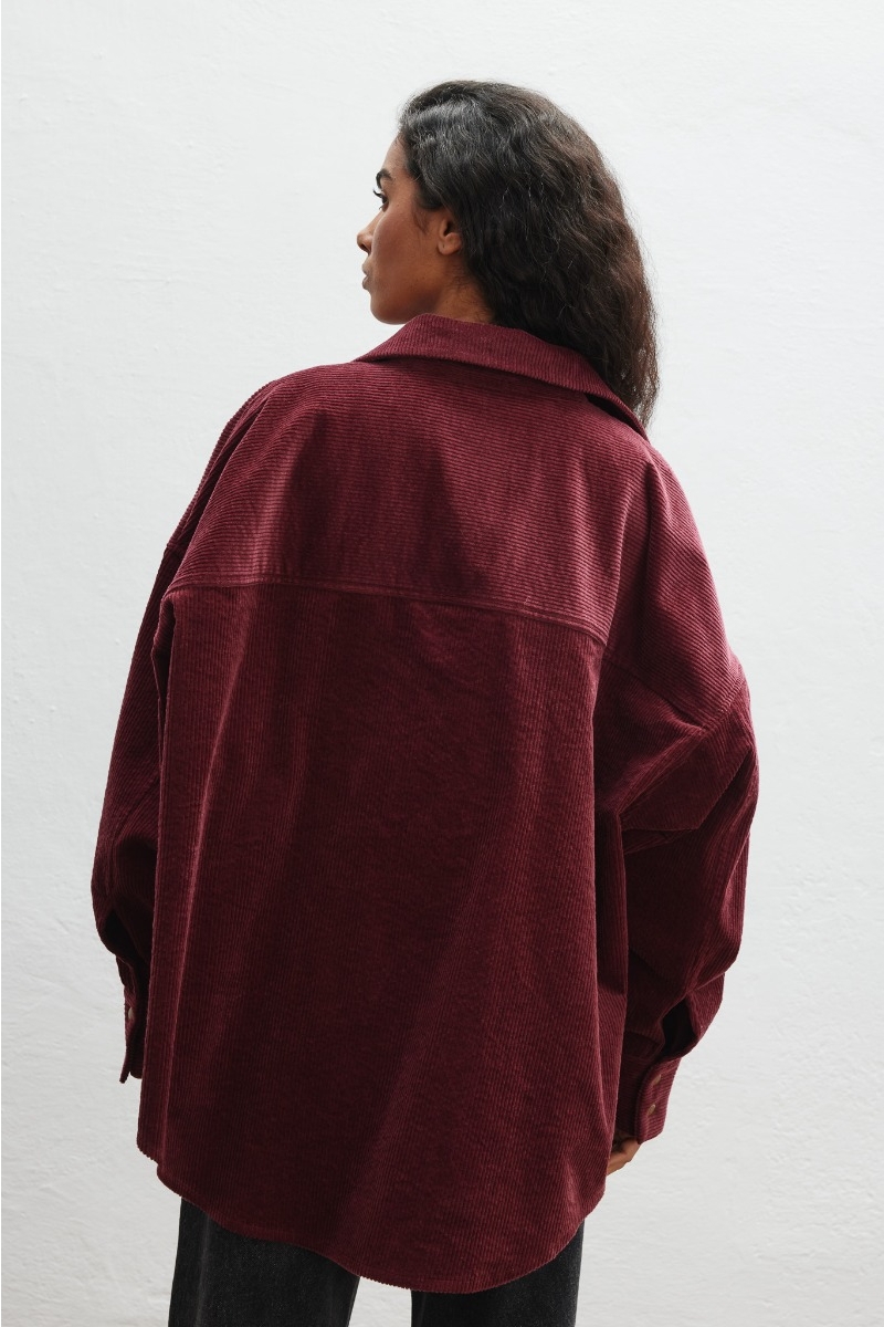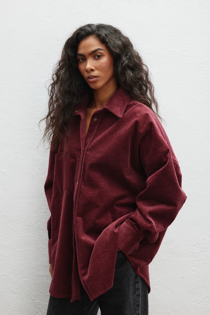 Koszula o kroju oversize wykonana z bawełny w kolorze bordo , o strukturze sztruksu.
