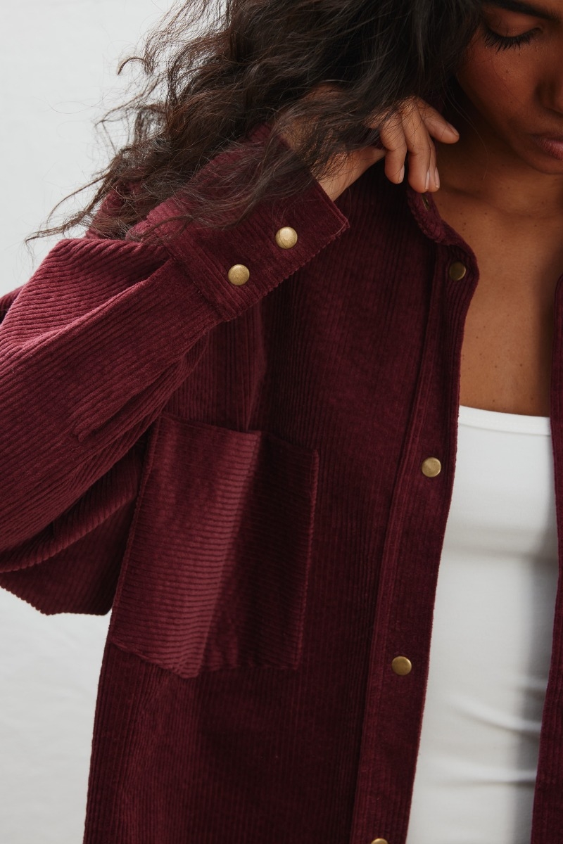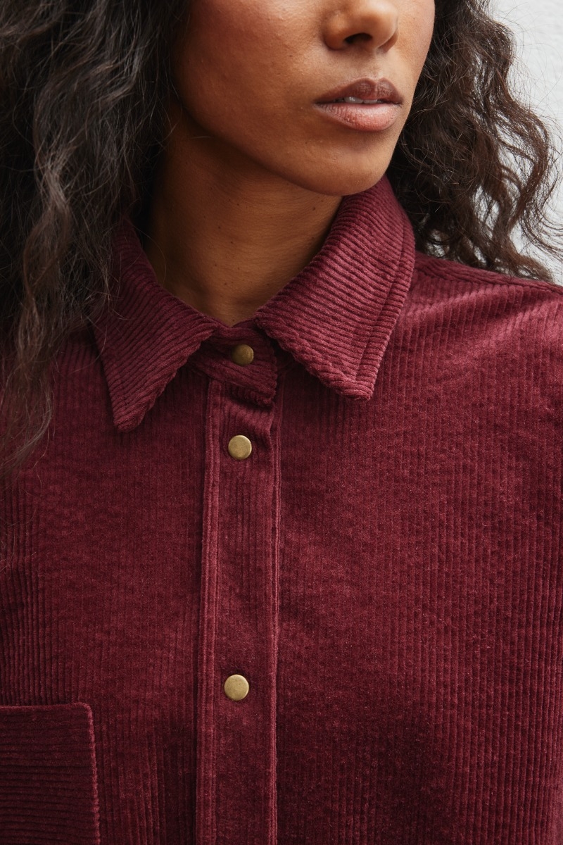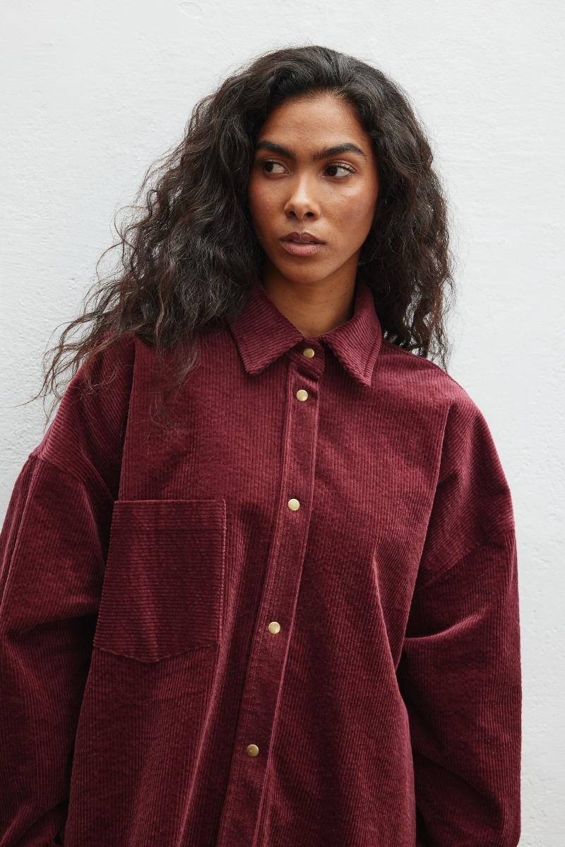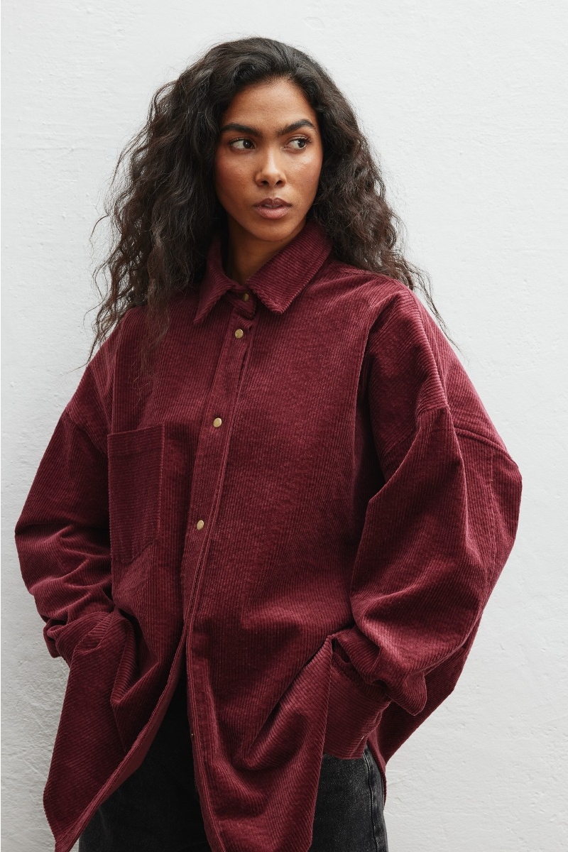 Koszula o kroju oversize wykonana z bawełny w kolorze bordo , o strukturze sztruksu.
