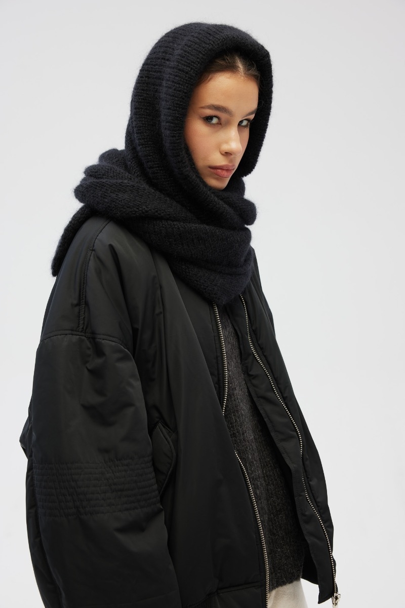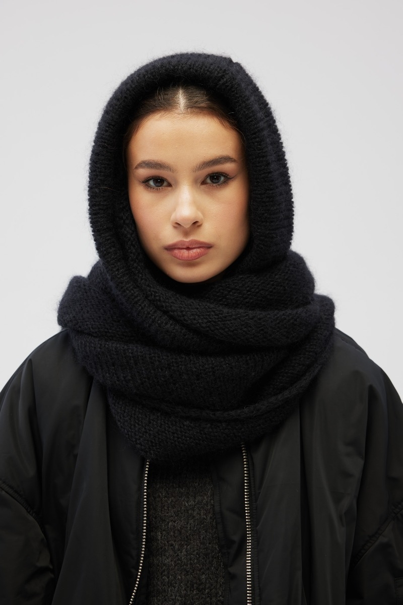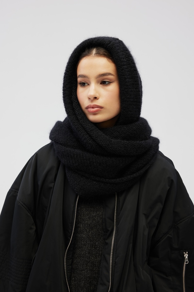 Unikalna forma chusty łączy funkcjonalność z elegancją – możesz nosić ją klasycznie owiniętą wokół szyi lub narzuconą na głowę jako stylowe okrycie. Doskonale sprawdzi się jako alternatywa dla czapki i szalika, podkreślając minimalistyczny, nowoczesny styl.