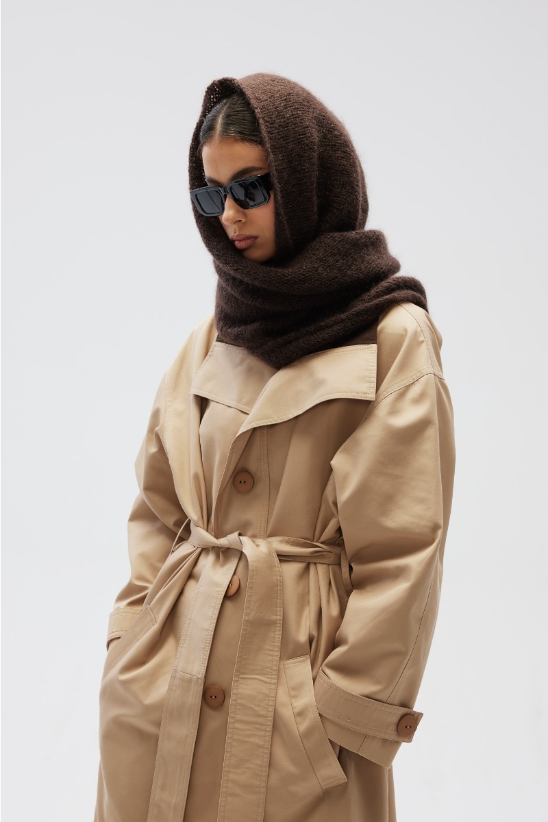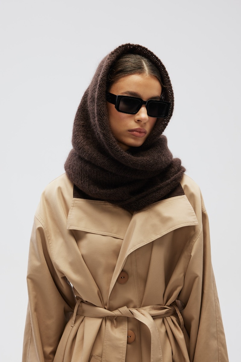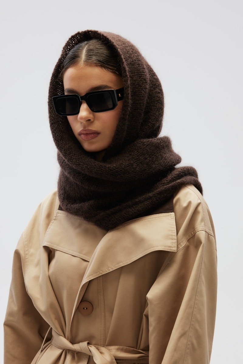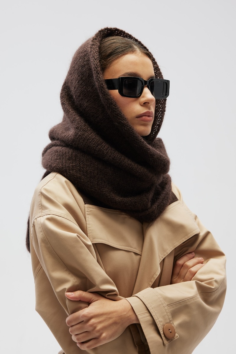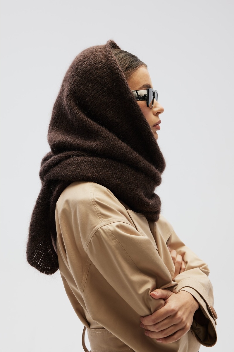 Unikalna forma chusty łączy funkcjonalność z elegancją – możesz nosić ją klasycznie owiniętą wokół szyi lub narzuconą na głowę jako stylowe okrycie. Doskonale sprawdzi się jako alternatywa dla czapki i szalika, podkreślając minimalistyczny, nowoczesny styl.