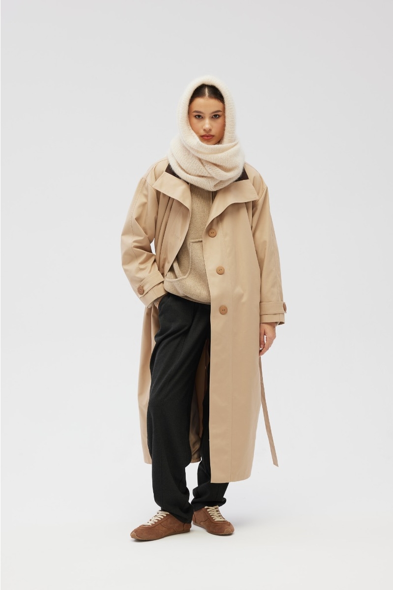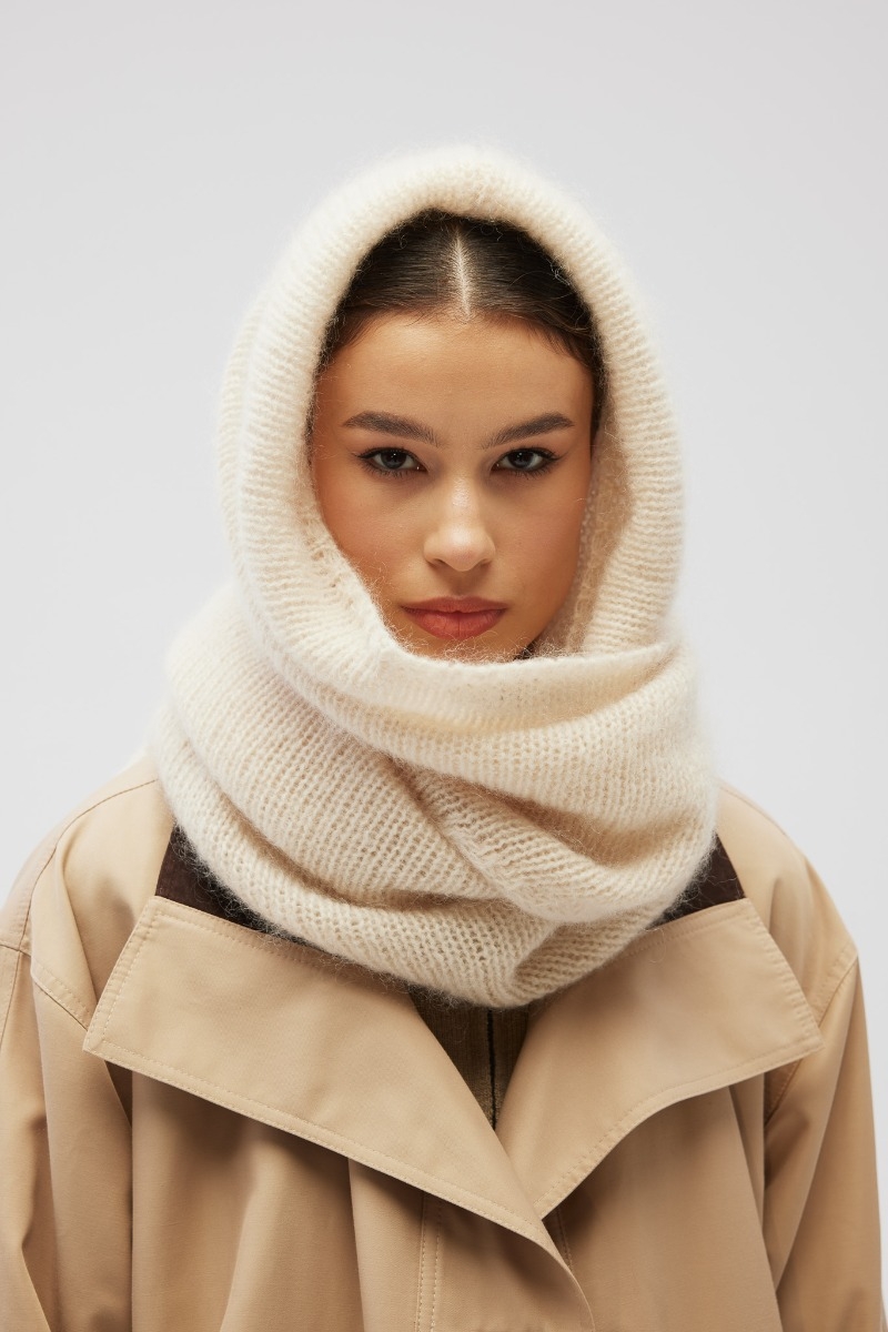 Unikalna forma chusty łączy funkcjonalność z elegancją – możesz nosić ją klasycznie owiniętą wokół szyi lub narzuconą na głowę jako stylowe okrycie. Doskonale sprawdzi się jako alternatywa dla czapki i szalika, podkreślając minimalistyczny, nowoczesny styl.