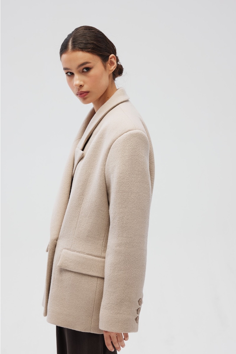 Wprowadź do swojej garderoby prawdziwie wyjątkowy element - naszą marynarkę BEXLEY w odcieniu jasnego beżu.