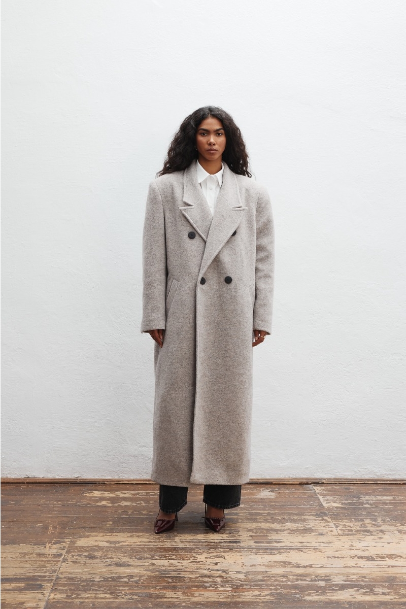 Model z klasycznym kołnierzem oraz klapami. Zapinany na dwurzędowe guziki, po bokach dwie kieszenie. Mankiety z niewielkimi guzikami. Tył gładki z klasycznym rozcięciem. Wnętrze wykończone czarną podszewką. Wełna w uzytej tkaninie doskonale reguluje temperaturę ciała, zapewniając komfort zarówno w chłodne, jak i cieplejsze dni. Jest oddychająca, odporna na zabrudzenia i w naturalny sposób odpycha wilgoć. Dodatkową zaletą wełny jest jej sprężystość – trencz nie gniecie się łatwo i długo zachowuje swój kształt. To włókno biodegradowalne i przyjazne dla środowiska, co czyni je świadomym wyborem dla osób ceniących jakość i odpowiedzialność.